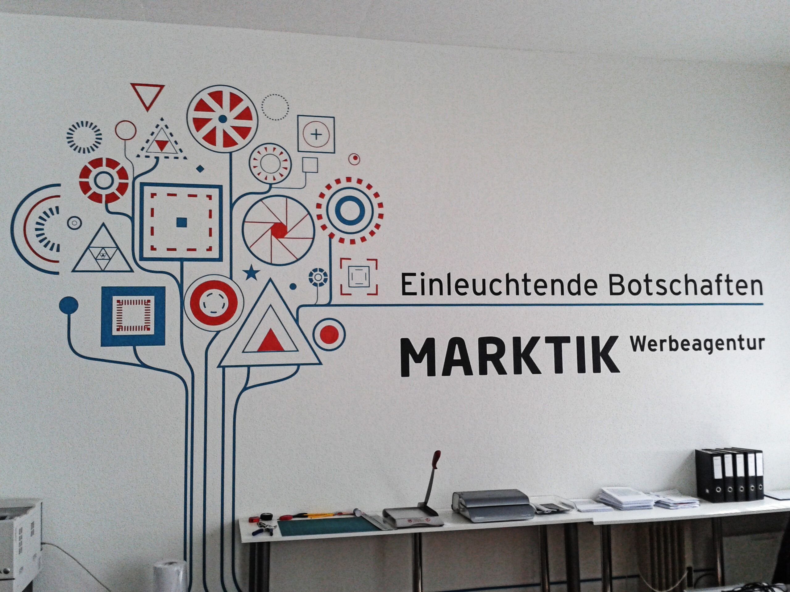 Direktbeschriften von Wänden durch Schablonieren oder mittels Wandtattoos.
